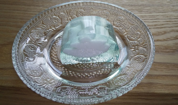 涼しげなお菓子をと求めた錦玉。真夏の青い空にもくもくと湧いた雲、夏の景色が切り取られ菓子の中に現れたようです。錦玉というと水辺のイメージでしたので、とても新鮮な感じがしました。