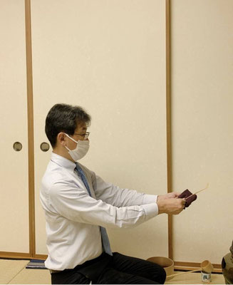 もうお一人は、2年ぶりのお稽古です。懐かしいお顔にスタッフも大歓迎。「初心者のつもりで一から…」と袱紗さばきから始まりましたが、お稽古の感覚が戻ってきたのか、自ら道具のお運びにも挑戦されました。
