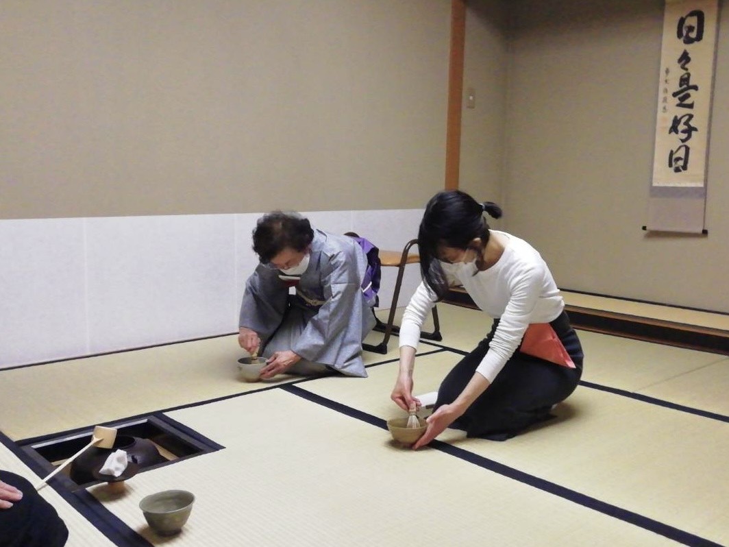 熱心な受講生はお点前をなさり、ご自服を楽しまれました。又体験の方は、6歳から30年間茶道に親しまれた方で、お茶盌に入れられたお茶で、当流の利休型茶筅の振り方を体験され、ご自服されました。