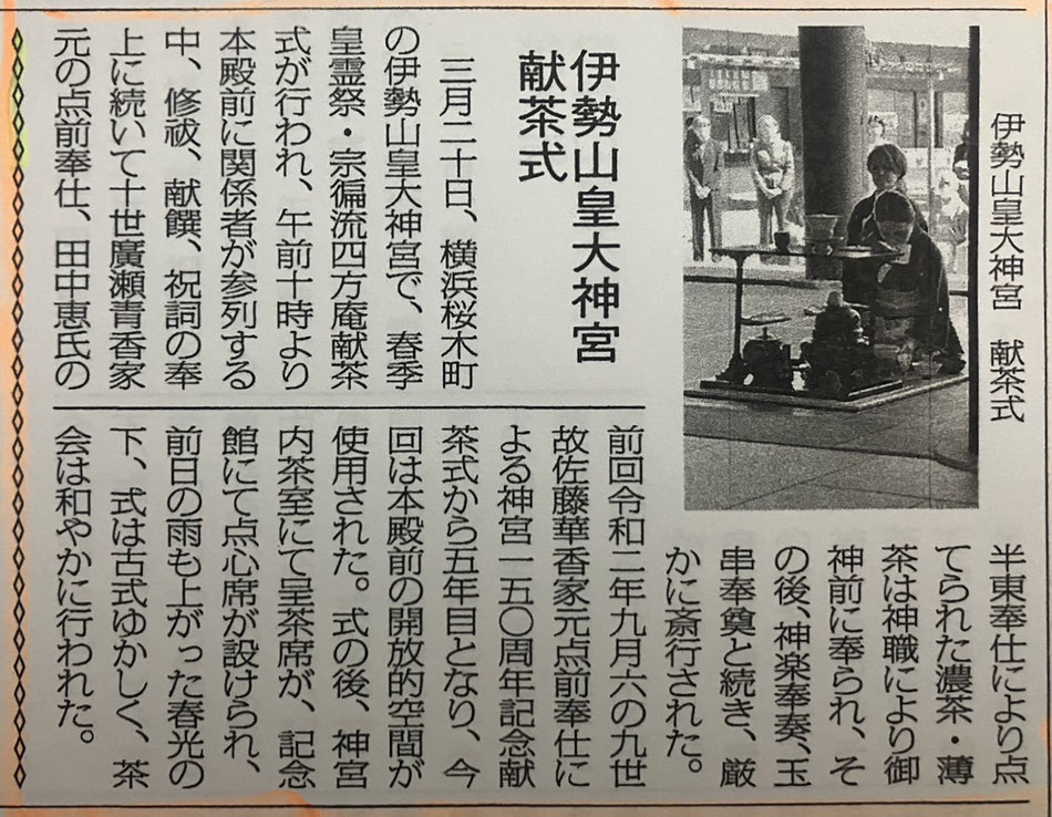 伊勢山皇大神宮献茶式の記事が掲載されました